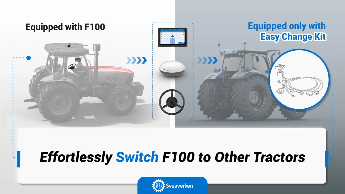 Effortlessly switch the F100 auto steer kit from one machine to another with ease.