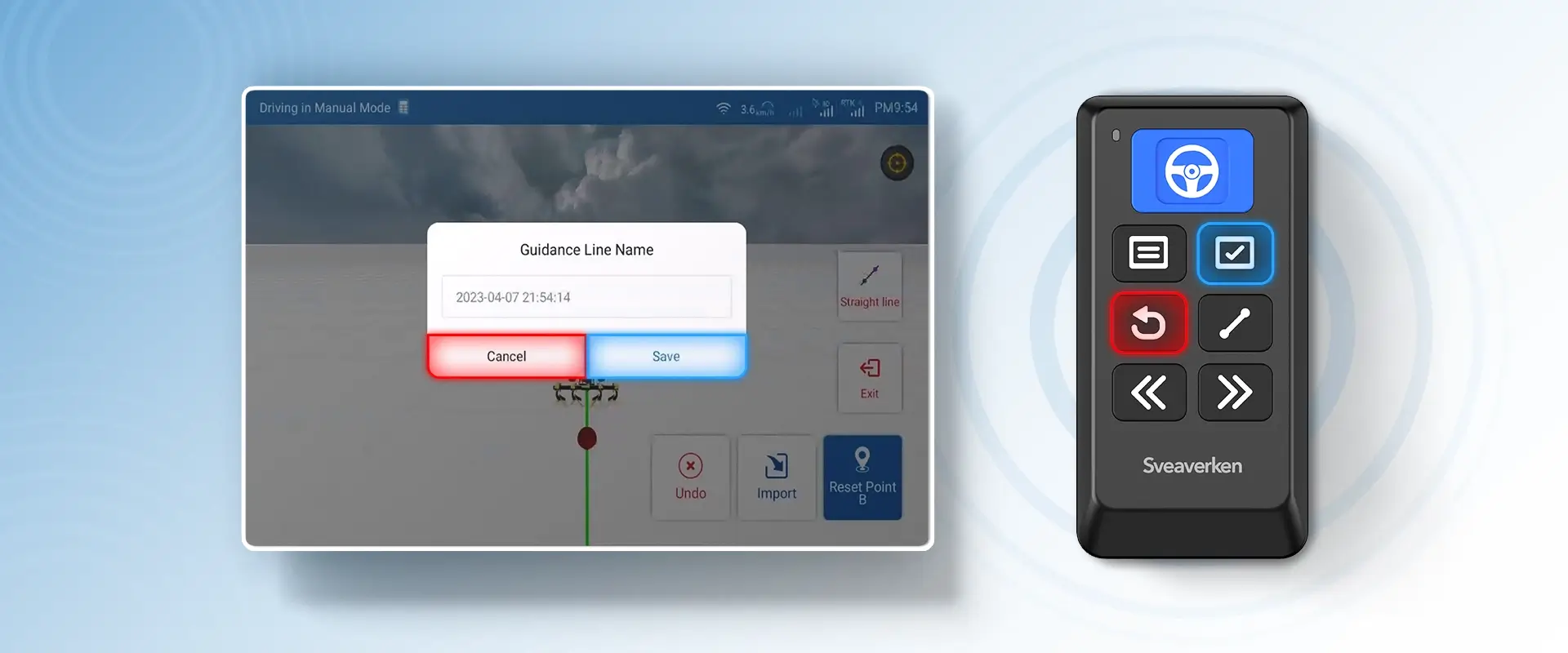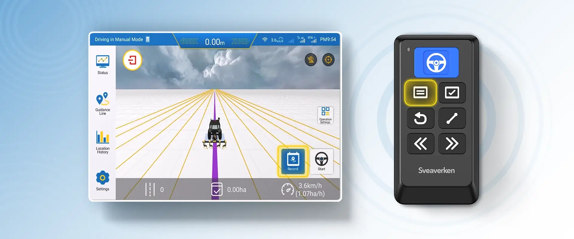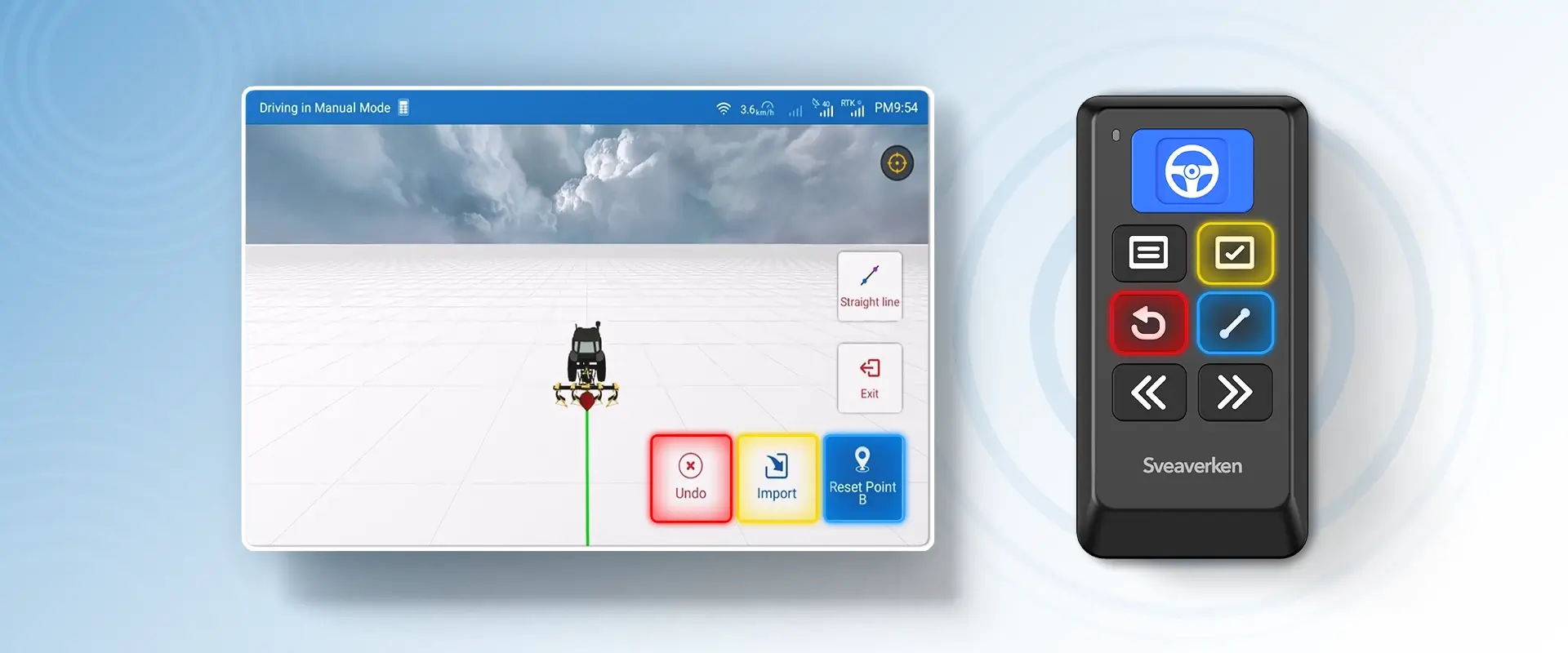 With Sveaverken Easy Control, you can create any guidance line by walking around, marking,canceling, and saving position points at will within 15 meters of Bluetooth reception. It solves the point of only being able to manually mark on-screen and provides a seamless user experience. Say goodbye to the limitations of touch screens and embrace the convenience of our user-friendly interface.