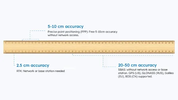 Source of correction: GPS L1/L2/L5, GLONASS L1/L2, BDS B1/B2/B3, Galileo E1/E5, SBASSize: 211.5 mm x 136,0 mm x 16.3 mm
