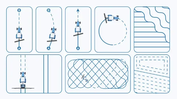 Start by selecting the driving line that best fits the task and shape of the field, ensuring that the vehicle stays on the track from start to finish.