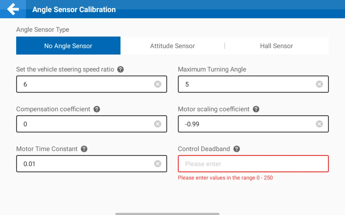 Note: The value you need to input is the sum of the left and right deadband degrees, that is, the degree at which the steering wheel rotates from the center to the left and right, but the tires do not turn.